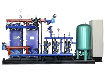 由水、水板式換熱機組、補水系統組合而且呈的定壓補水機裝置,定壓補水機組始運行時啟動補水泵...